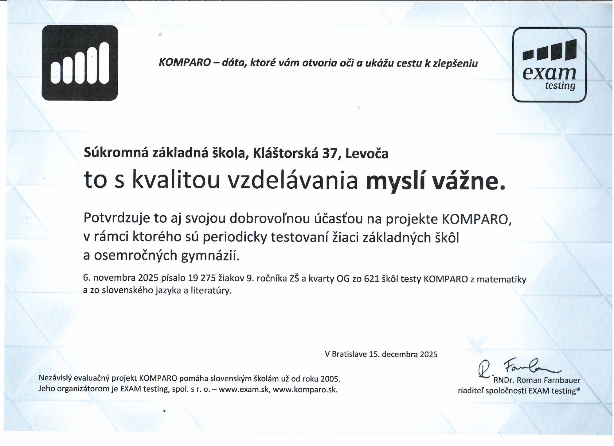 Riaditeľstvo Súkromnej základnej školy, Kláštorská 37, Levoča oznamuje rodičom a žiakom,